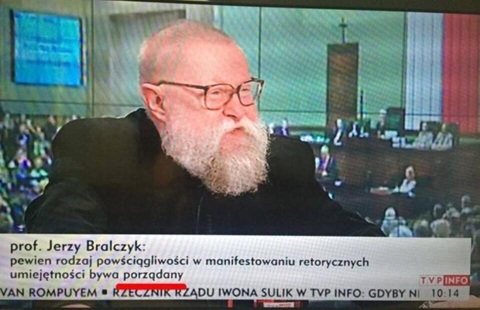 Znany językoznawca gościł w porannym programie TVP Info. Jego przemyślenia co jakiś czas pojawiały się na dolnym pasku ekranu. Jeden z nich w szczególności zwrócił uwagę internautów z profilu „Cała Polska czyta dziennikarzom” na Facebooku.