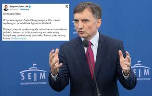 Ziobro musi przeprosić Holland za słowa o "Zielonej Granicy". "Ci, którzy stają w obronie Polski, munduru i honoru żołnierza, mają milczeć"