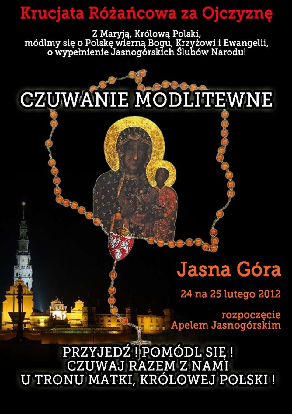 Z przyjemnością informujemy, że w nocy z 24 na 25 lutego odbędzie się drugie czuwanie Krucjaty Różańcowej za Ojczyznę.
