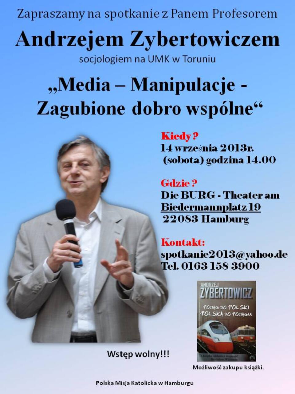 PMK w Hamburgu zaprasza na spotkanie z prof. Andrzejem Zybertowiczem i wykład na temat: „Media i Manipulacje – zagubione dobro wspólne“.