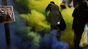 Odpalono też race w kolorach flagi Ukrainy - niebieskim i żółtym.