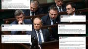 Na nic fortel premiera z utajnieniem obrad. Opozycja punktuje wystąpienie Tuska. "Kto mieczem wojuje, od miecza ginie"; "Żenująca szopka"