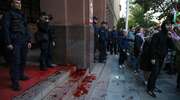 Awantura na proteście zwolenników Palestyny przed MSZ! Wybito szybę w siedzibie ministerstwa, oblano też wejście czerwoną farbą