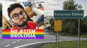 UJAWNIAMY. Akcja Barta Staszewskiego z tablicą „strefa wolna od LGBT” w Łososinie była fotomontażem. Aktywista przyznał się do tego w sądzie