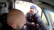Na nagraniu widać, że Piotr Sz. rzuca przedmiotem w ciężarówkę, a następnie do niej podchodzi, agresywnie otwiera drzwi po czym szarpie kierowcę pojazdu, łapie go za głowę i rzuca jego czapką.
